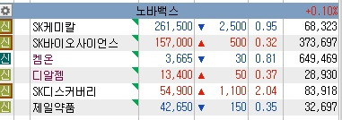 노바백스 관련주 sk바이오사이언스·제일약품·켐온·sk케미칼 모두 하락.